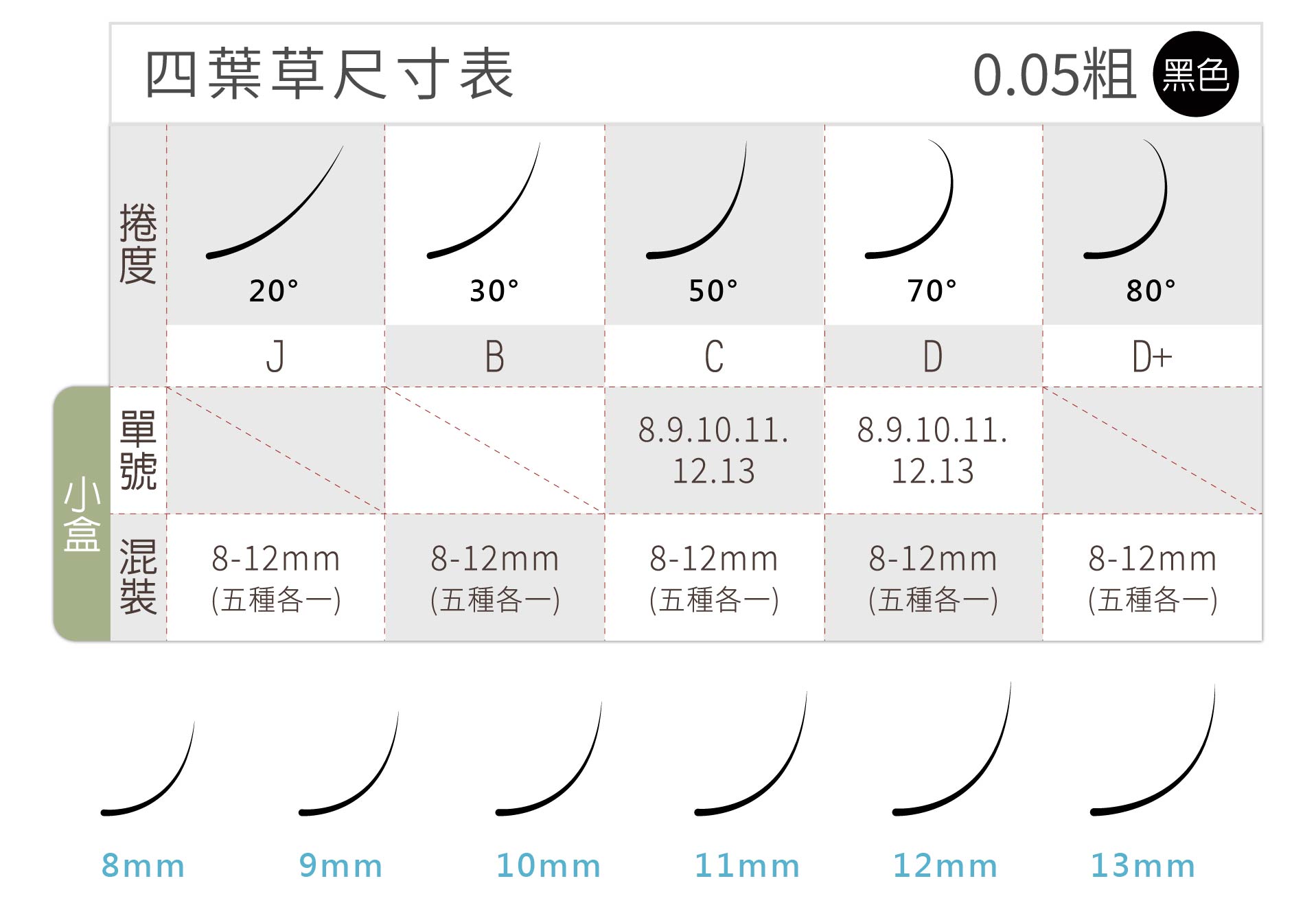 睫毛盒上方均標示尺寸