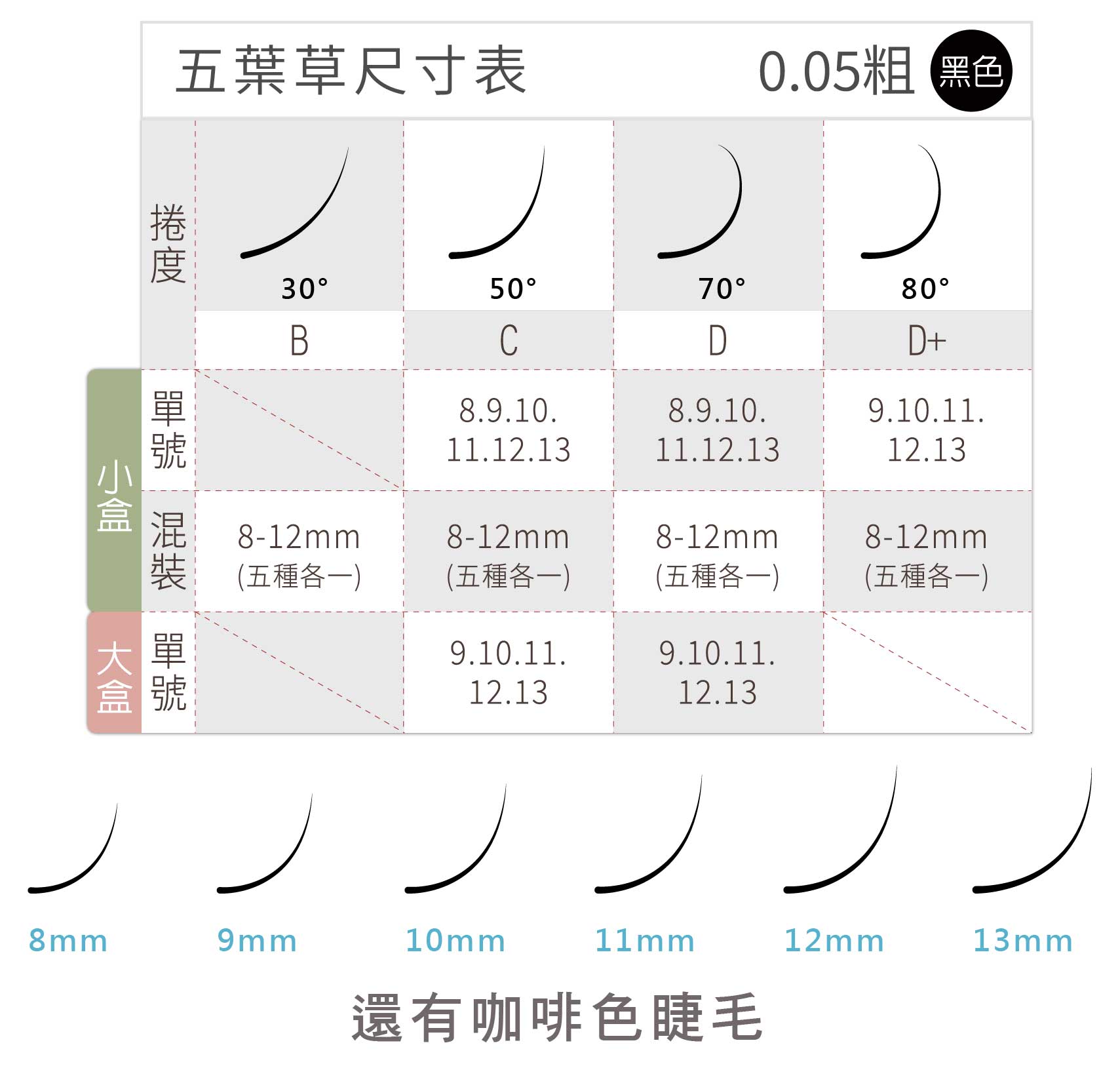 睫毛盒上方均標示尺寸