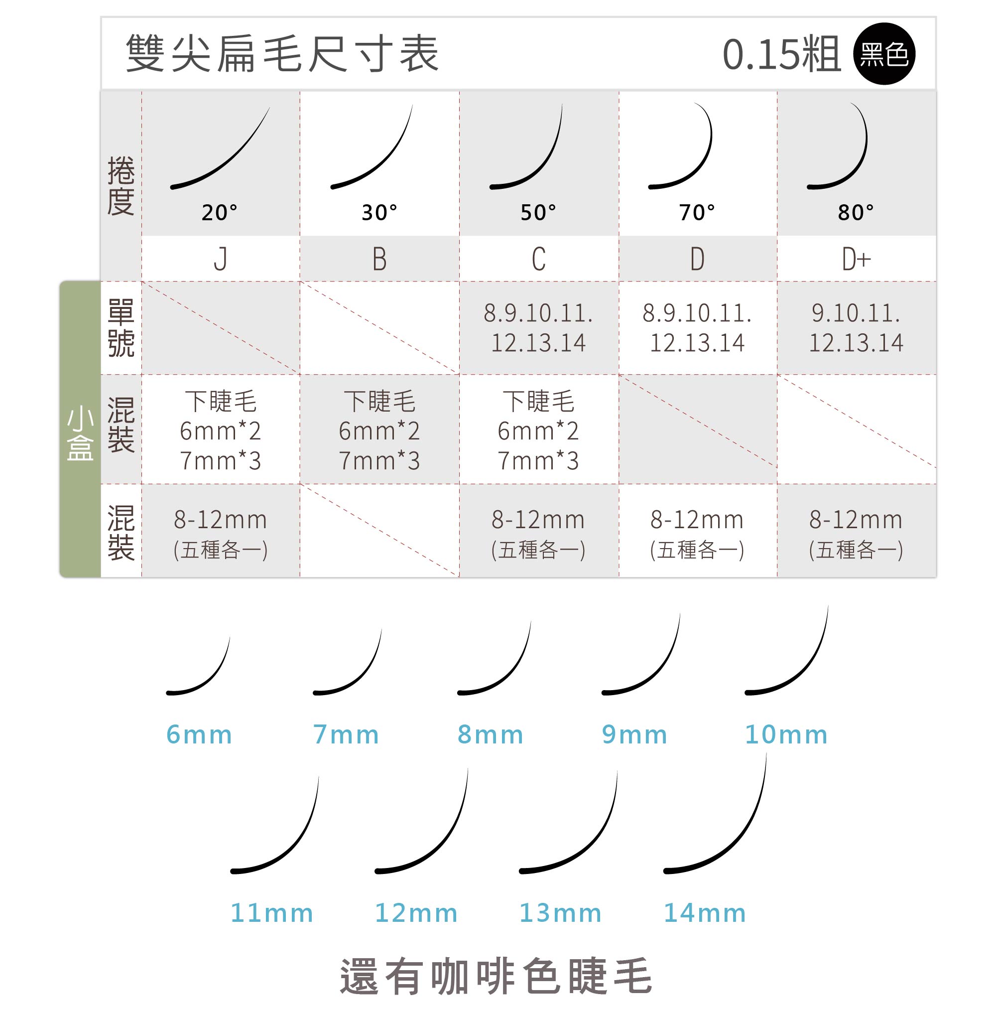 【黑色】雙尖扁毛0.15 D+捲/5排裝