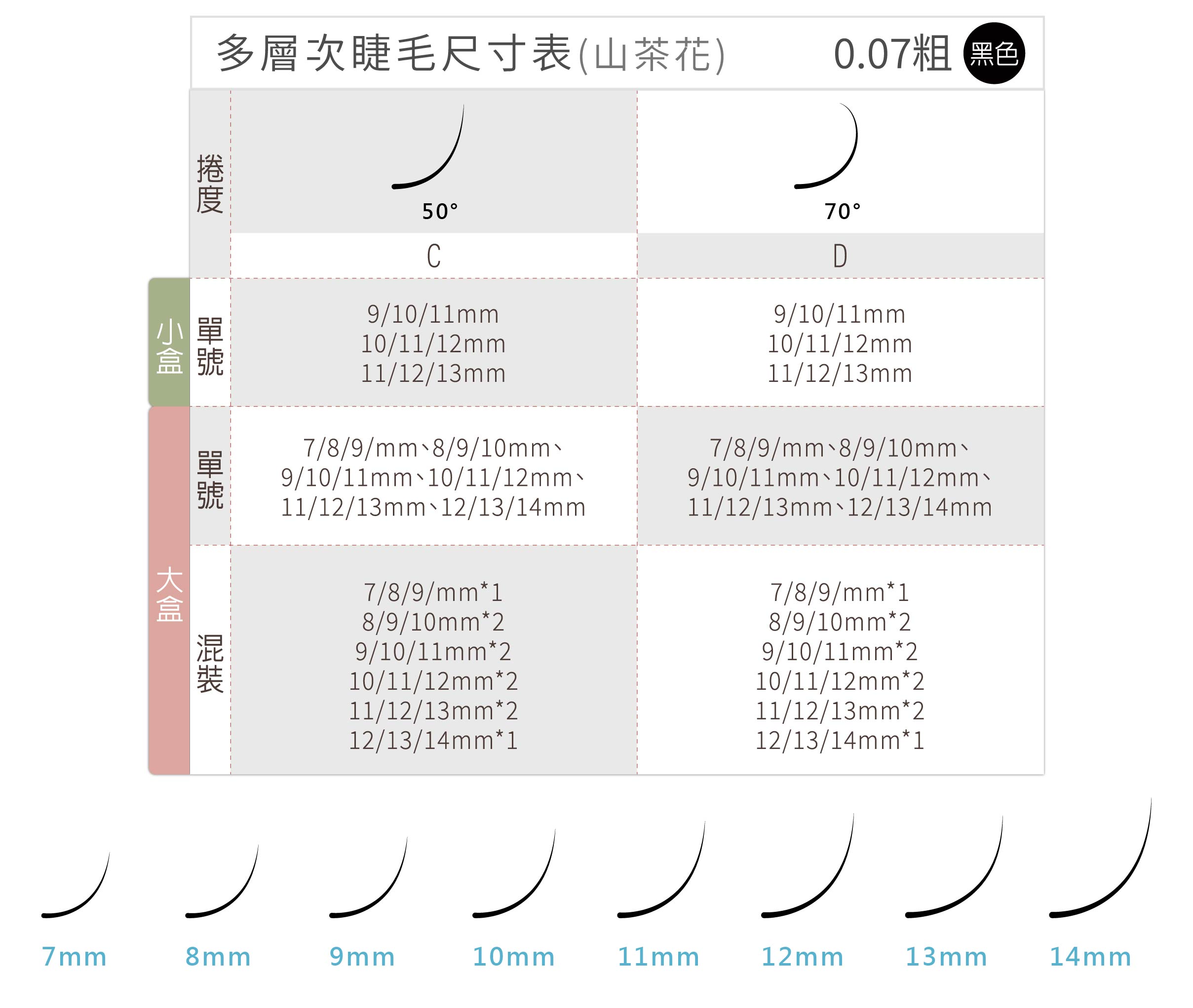 睫毛盒上方均標示尺寸