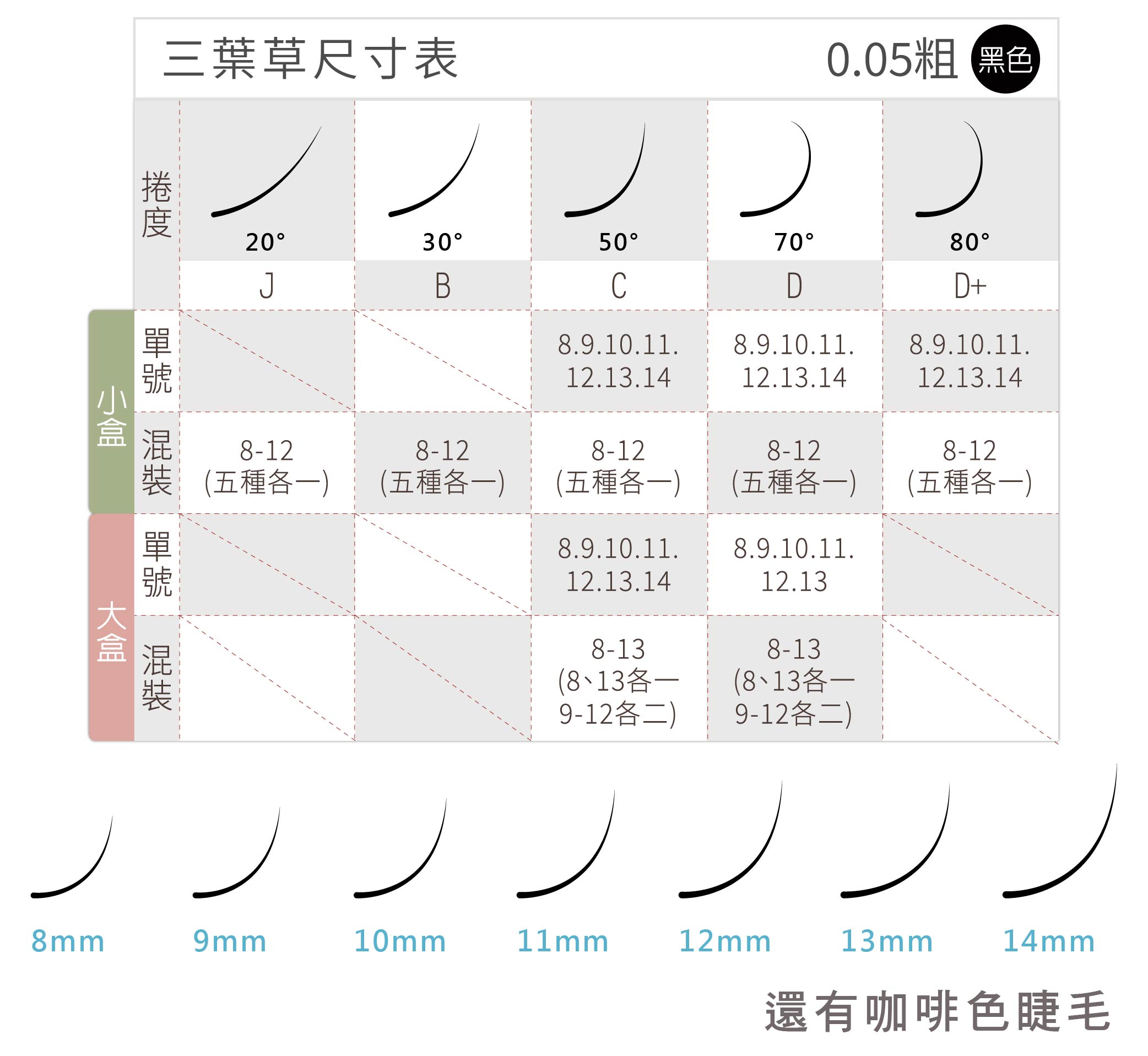 【黑色】三葉草睫毛0.05 B捲/5排裝